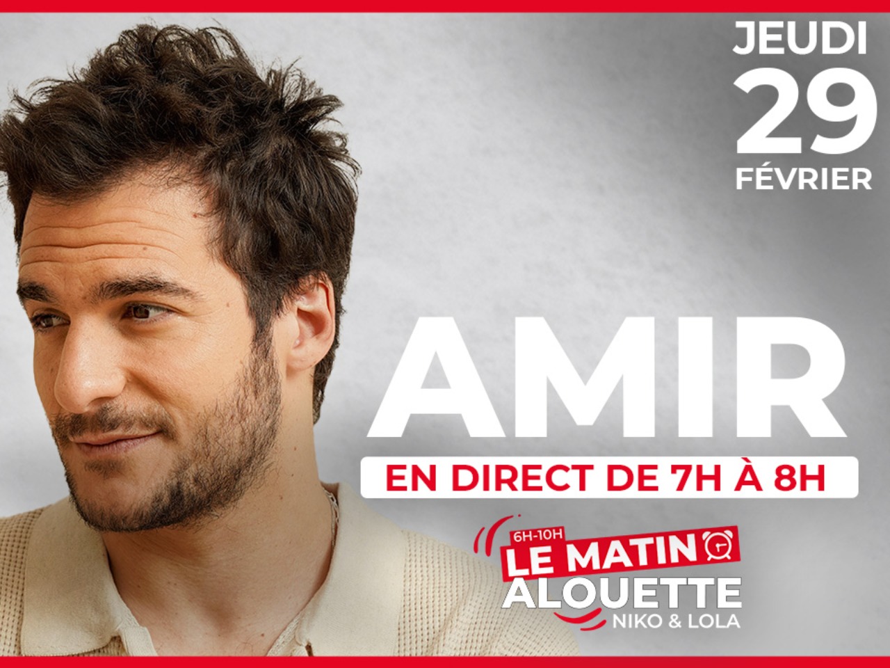 Jeudi 29 février, réveillez-vous avec Amir dans Le Matin Alouette !