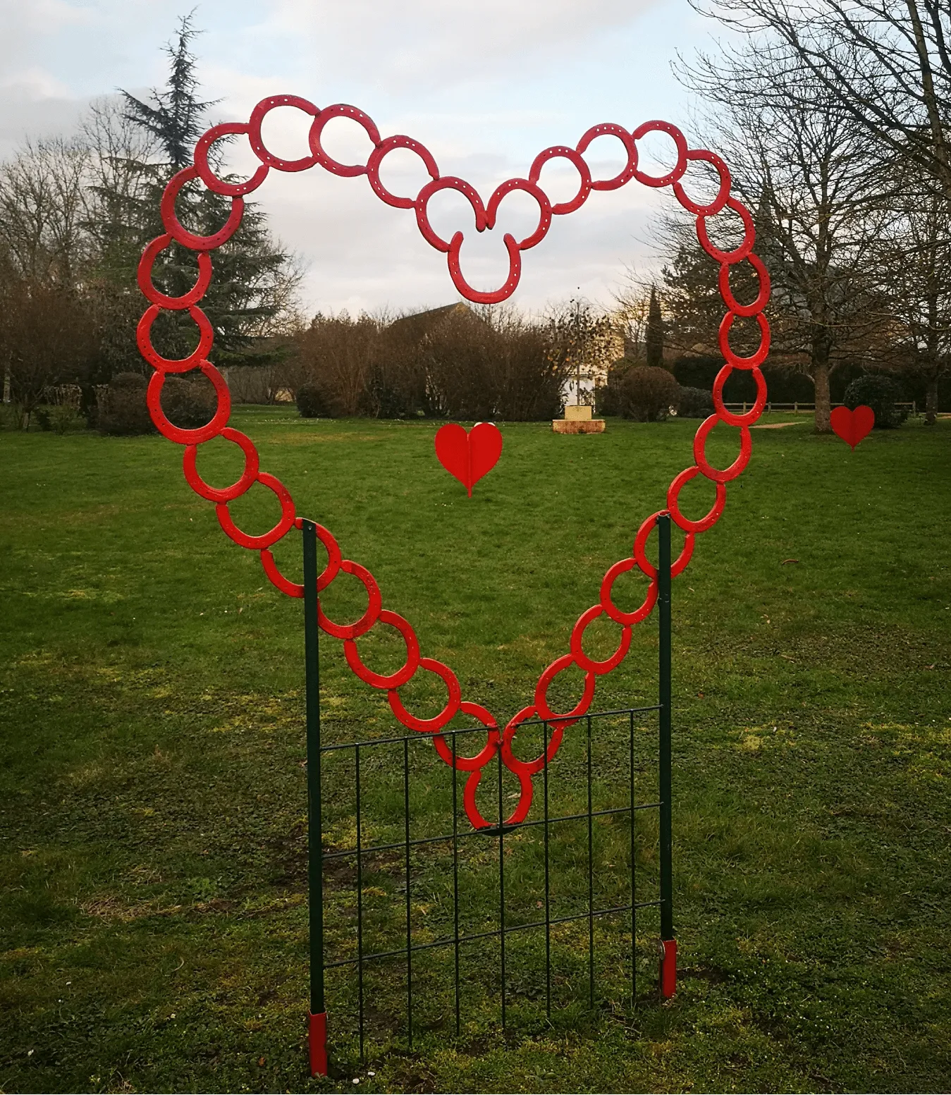 Cette année 2024 marque le 60e anniversaire des animations dans le petit village. À cette occasion, un cœur rouge fabriqué avec des fers à cheval a été installé dans le jardin des amoureux : "Il a été créé par quelqu’un qui habite à une vingtaine de kilomètres d’ici", détaille l’élu.