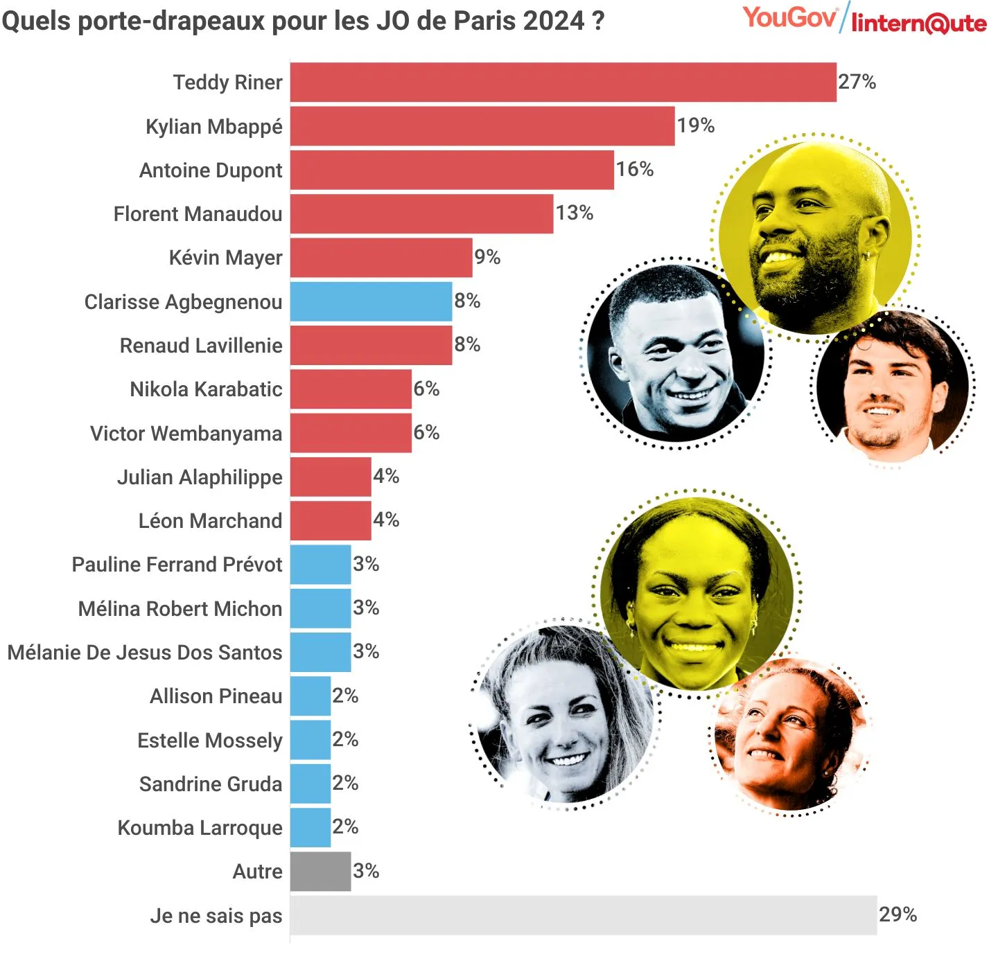Un sondage réalisé par la société YouGov pour le média l'Internaute, montre la popularité de certains athlètes auprès des français... malgré cela, la plupart d'entre eux ne seront pas éligibles !